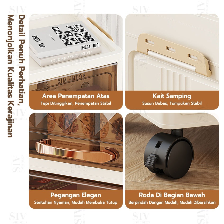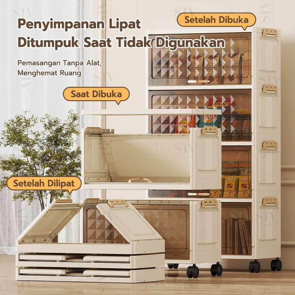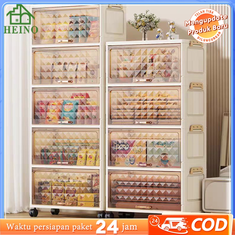 HEINO 40CM/50CM Lemari Plastik Piring Tertutup Lemari Penyimpanan Multilayer Dengan Roda Pintu Lemari Kapasitas Besar Tu
