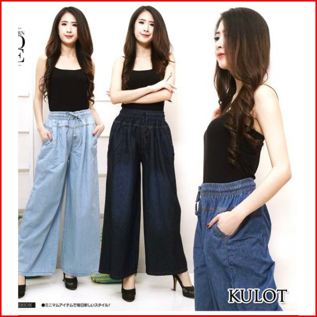 Celana Panjang Jeans Wanita - Celana Boyfriend Kulot - Celana Jumbo - Kulot Jumbo