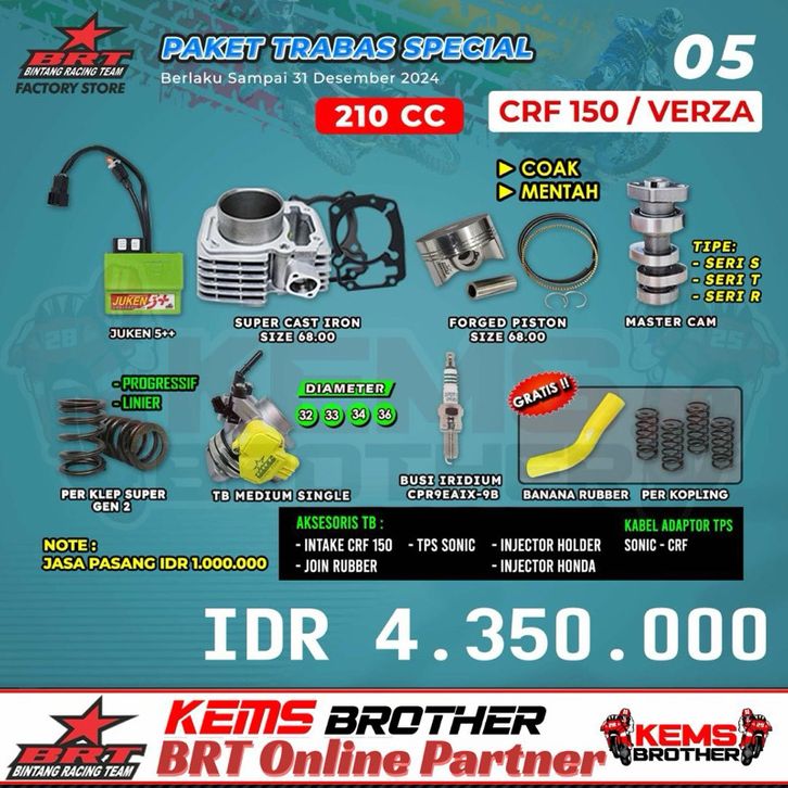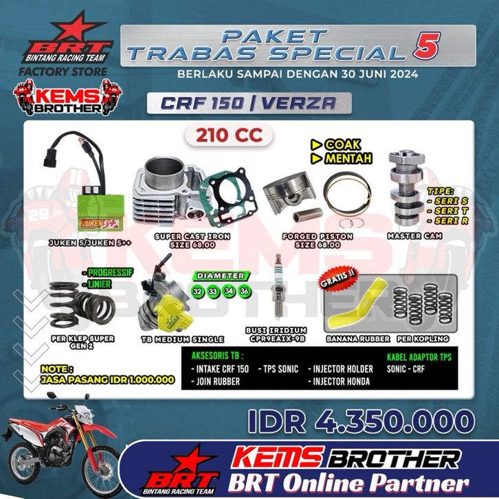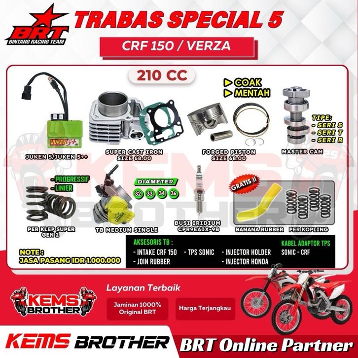 [Star] PAKET ORIGINAL BRT CRF150 TRABAS SPESIAL 5 BOREUP 210CC (ECU JUKEN 5+ HIJAU, SILINDER BLOK CASTING IRON 66 68,
