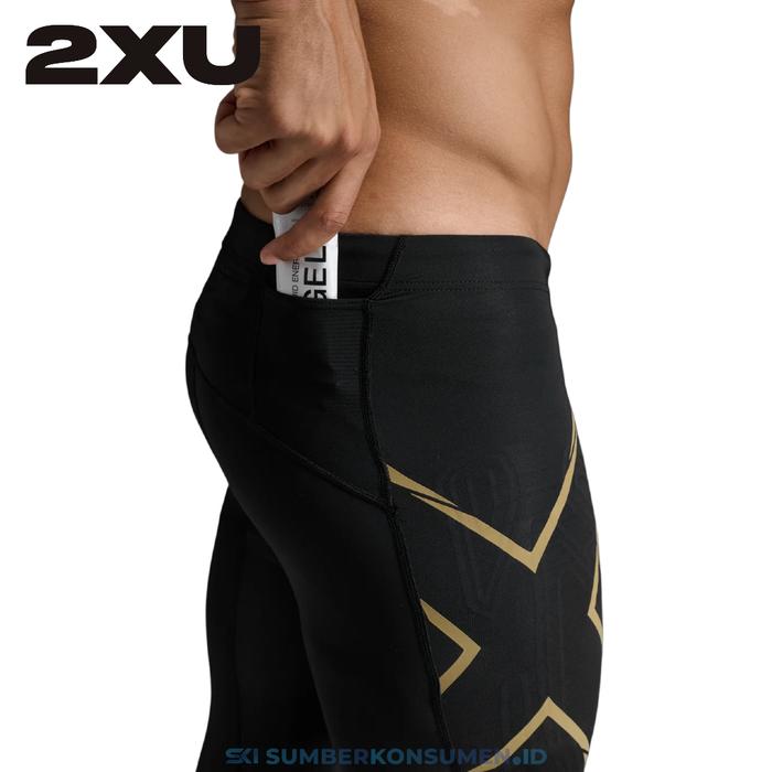 2XU MEN LIGHT SPEED COMPRESSION TIGHTS / CELANA RUNNING LARI LEGGING PANT PANTS PRIA - BLACK/ REFLECTIVE, S