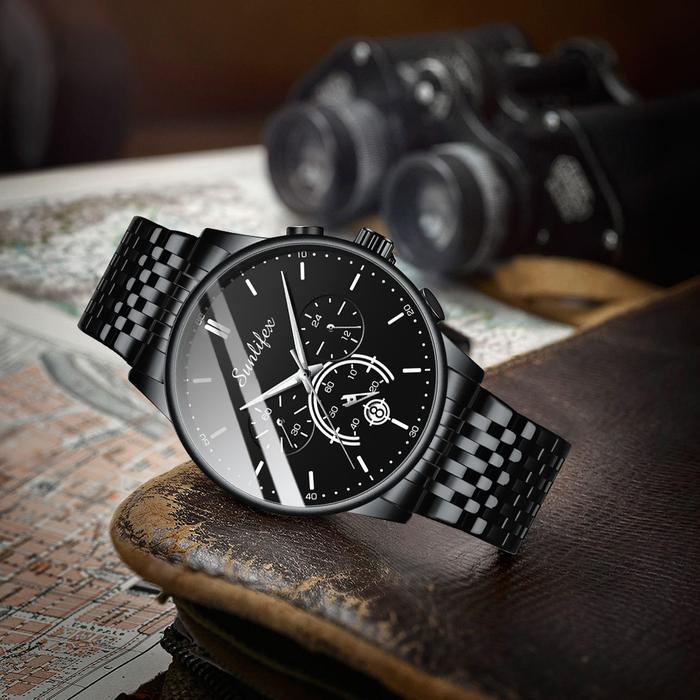 SUNLIFX JAM TANGAN PRIA BISNIS TALI STAINLESS STEEL ORIGINAL TAMPILKAN - PUTIH