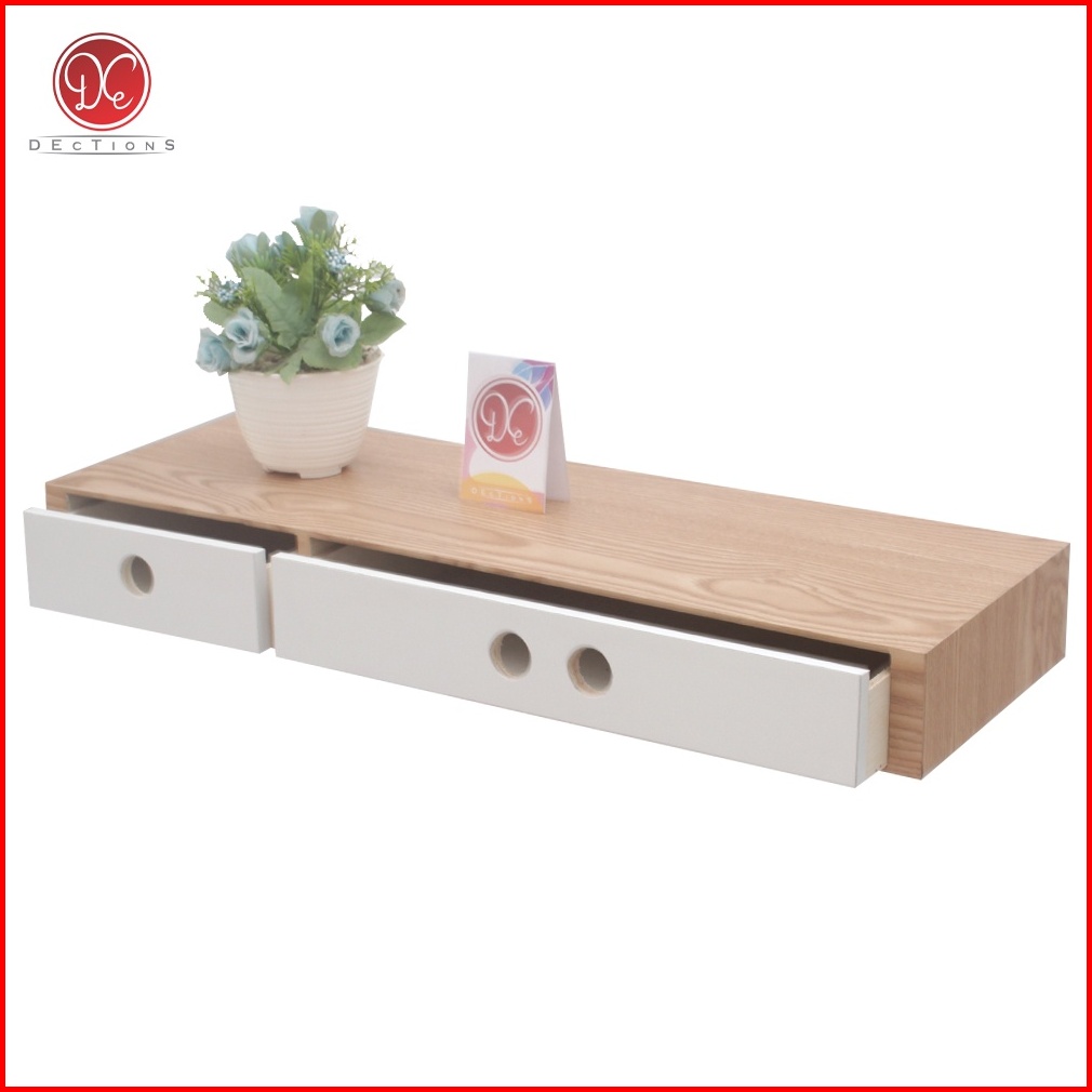 Dections Ambalan Laci 60x20cm Melayang Rak Buku Minimalis Dinding Dekorasi Rumah Unik 2 Penyimpanan