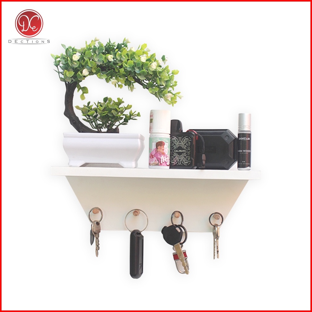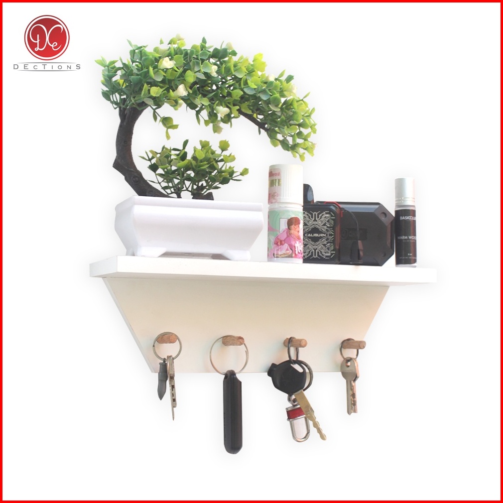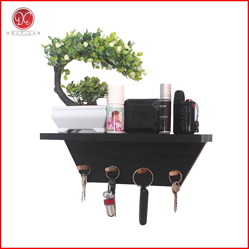 Dections Tempat Gantungan Kunci Rak Dinding Serbaguna Key Holder Kapstok Kayu Trapesium 30x10cm