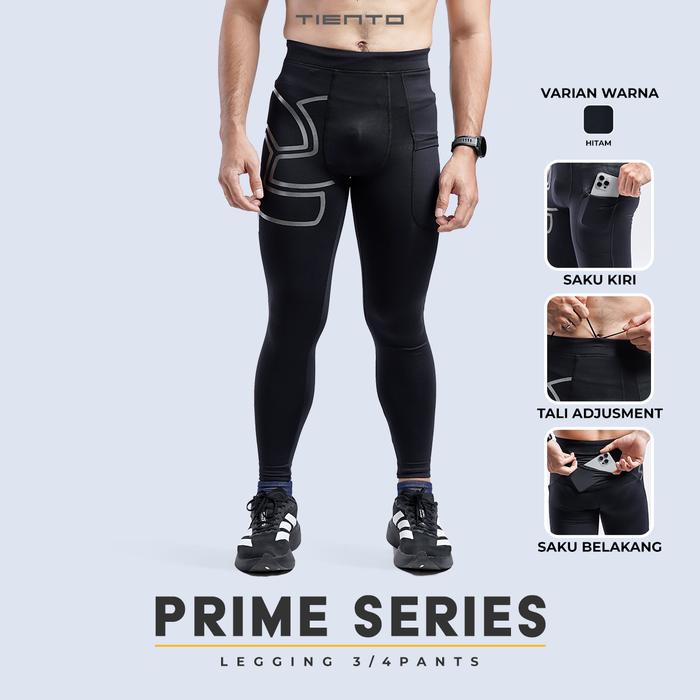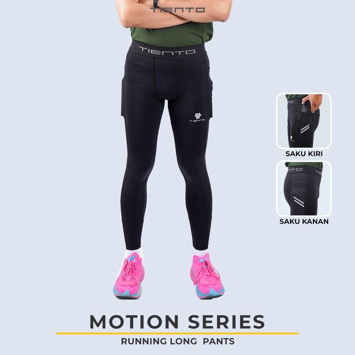 TIENTO BASELAYER LEGING CELANA PANJANG KETAT OLAHRAGA PRIA LEGGING SPORT LONG PANTS EXO SERIES BOLA - BLACK, 3XL