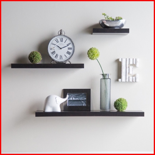 Dections Rak Ambalan Dekorasi Dinding Minimalis 3 Buah 50 40 30 Cm Model Tempel Gantung - Hitam