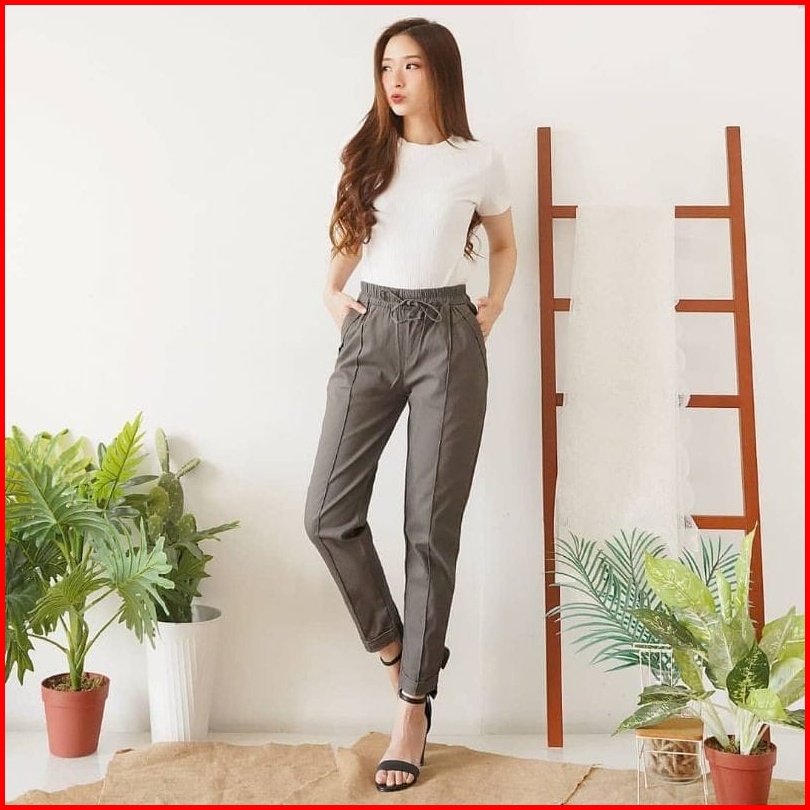 Celana Panjang Wanita Baggy Pants Twill Stretch Bisa Melar