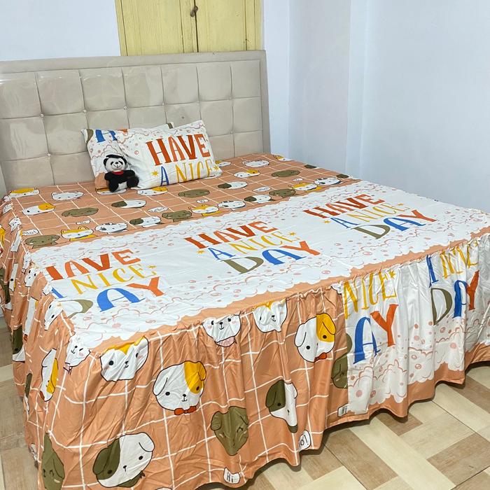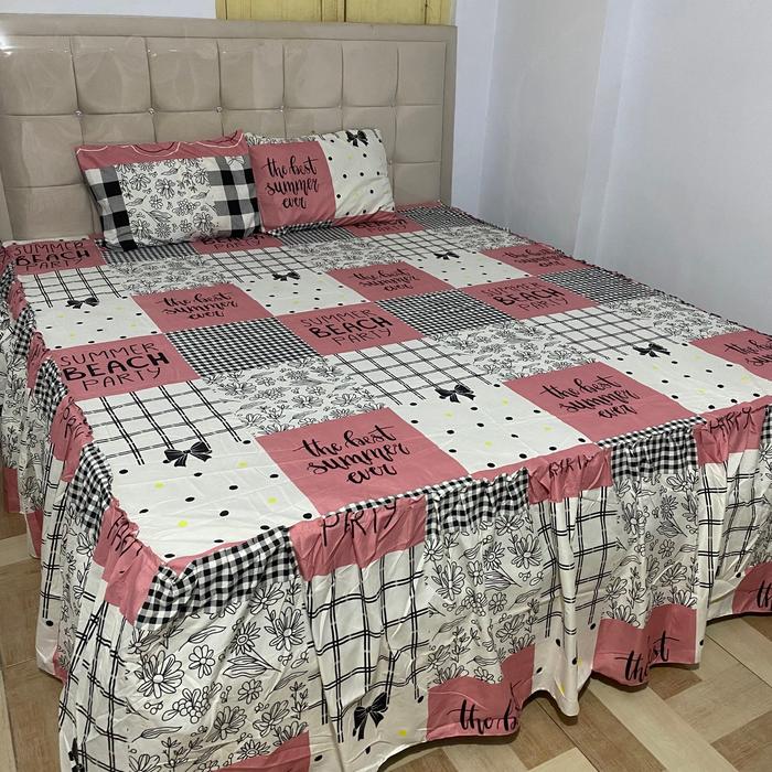Sprei Rumbai Rempel 180X200 & 160X200 Homemade Motif Bunga Aesthetic Tinggi 40 Cm Bantal King Sarung - Vaselina, 180