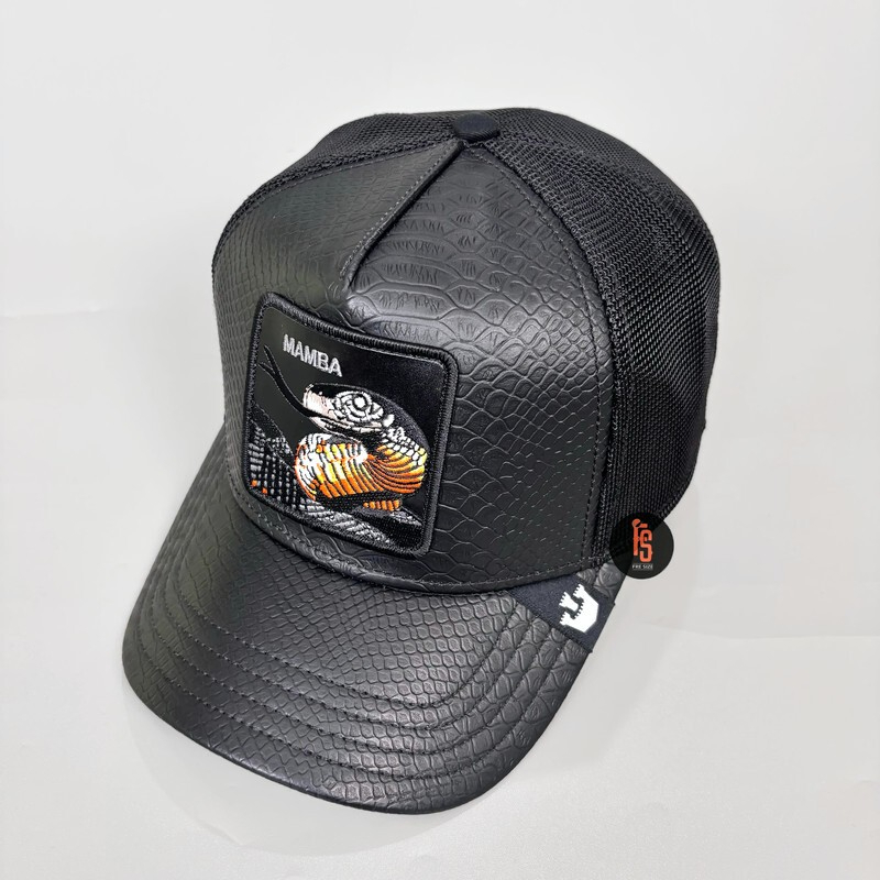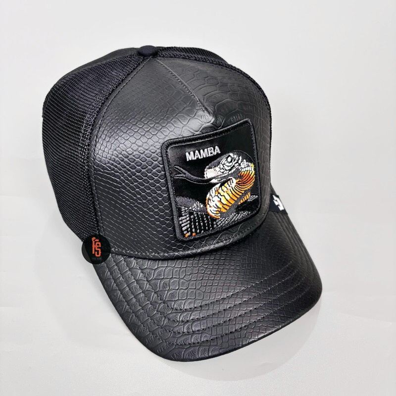 TOPI PRIA GOORIN BROS TRUCKER THE MAMBA LEATHER SNAKESKIN BLACK ORIGINAL