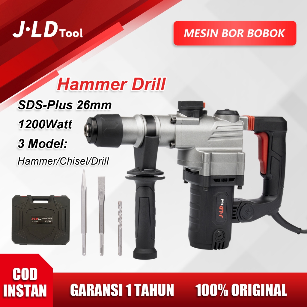 JLD Mesin bor bobok 26mm Hammer Drill Elcetrik 1200W Mesin bor Listrik J26-1 Bor beton tembok Bor listrik 1 set lenkap Rotary Hammer Mata