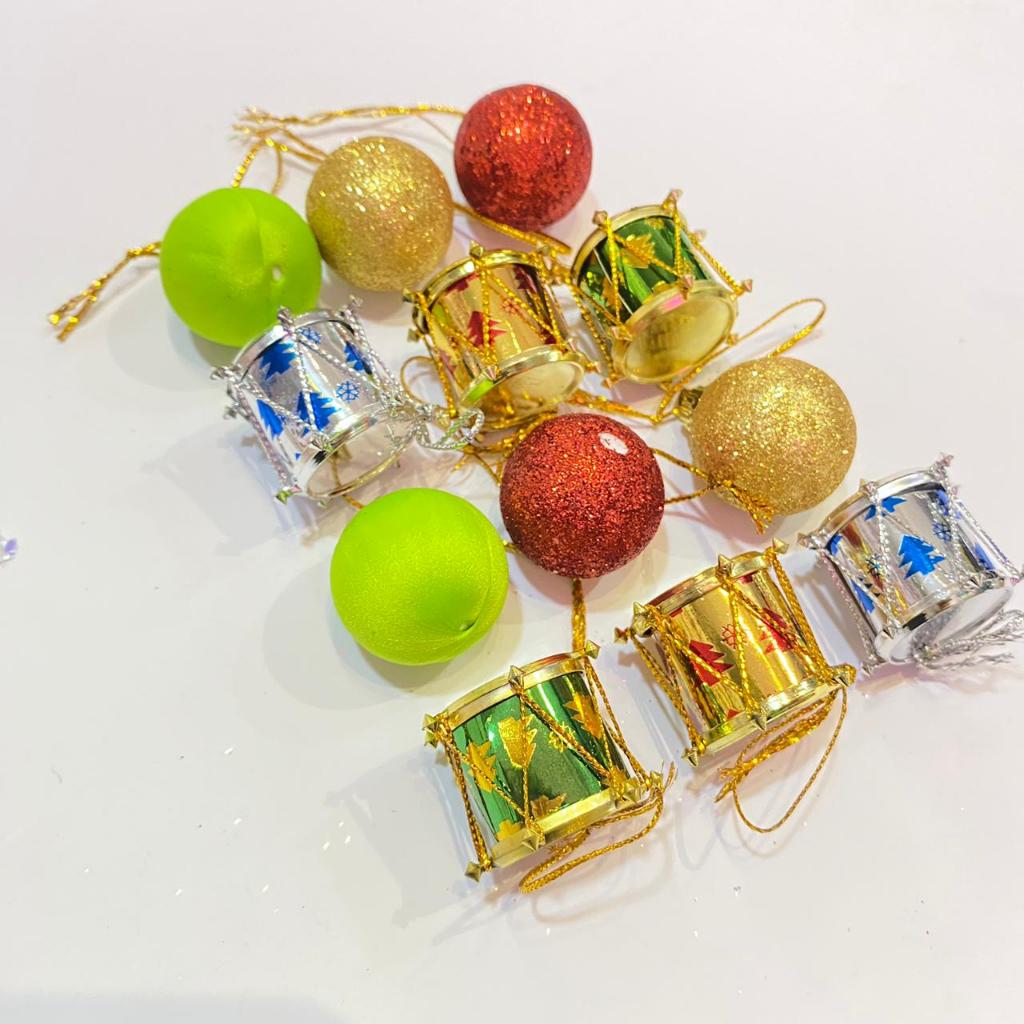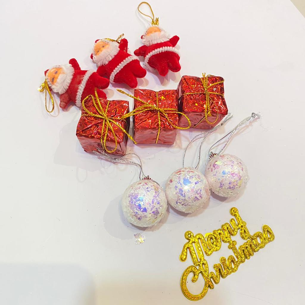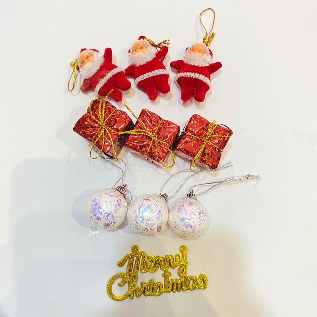 Hiasan Gantungan Pohon Natal 1 set Miniatur Santa Kado Bola Drum Dekorasi Pohon Natal Ornamen Merry Christmas