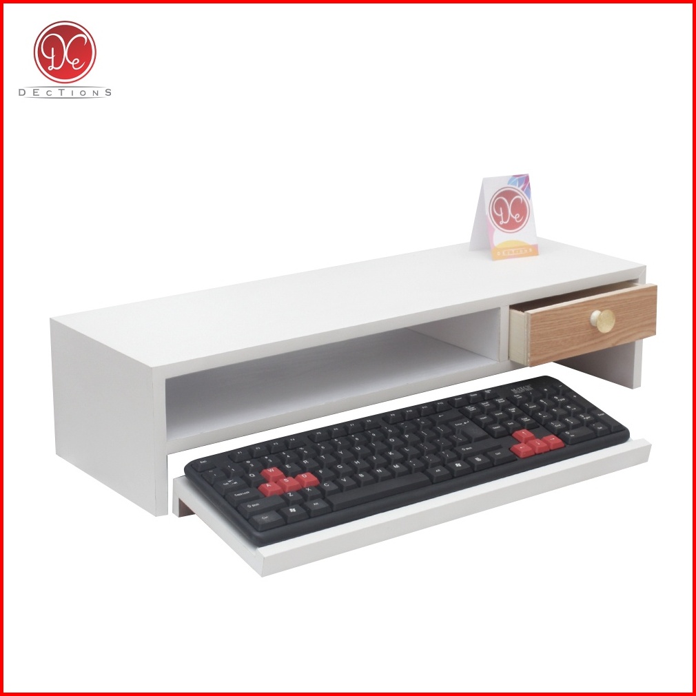 Dections Stand Monitor Tempat Pc Dudukan Komputer Dengan 1 Laci Plus Tempat Keyboard Bahan Kayu