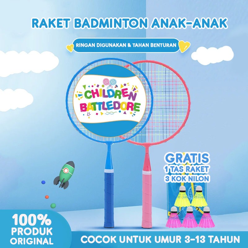BBAK SET 2 PCS Raket Bulutangkis Anak / Raket Badminton Anak Umur 3-13 Tahun GRATIS TAS RAKET & 3 KOK