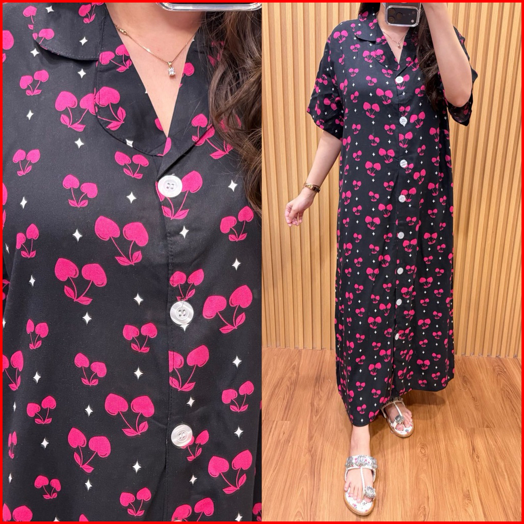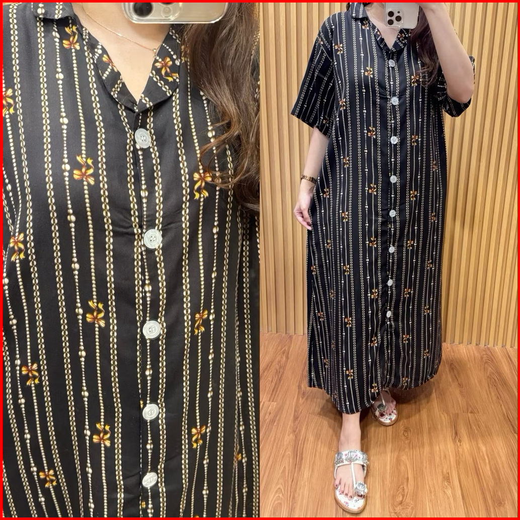 Daster Aira Kancing Bunga-bunga Rayon Ld 120cm Pb 130cm