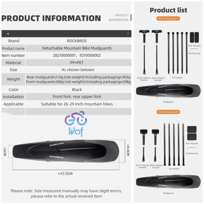 Rockbros Fk-899 Fender Spakbor Mudguard Sepeda Quick R Mud Guard 2821 - Depan