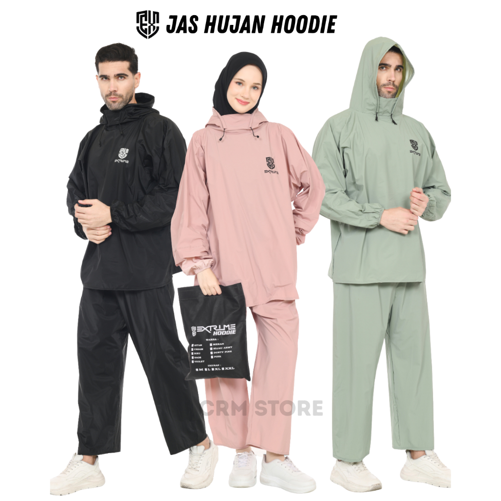 Extrime Hoodie Raincoat Jas Hujan Pria Wanita Model Hoodie Tanpa Zipper Resleting Full Seal Press Anti Rembes