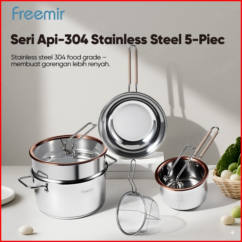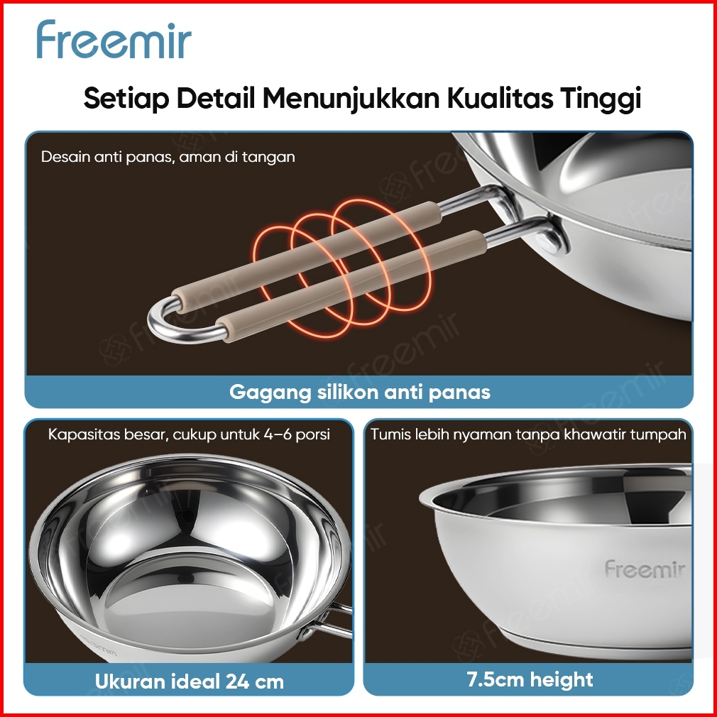 Special Freemir Wajan Stainless Set Serie Api Sus304 Induksi Bottom Anti Karat Panas Cepat Merata