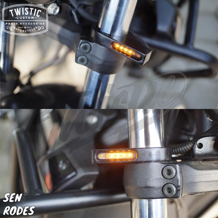 Lampu Sen Sein Led Rodes Shock Motor Harley Triumph Universal 41Mm - Hitam Clear Nr