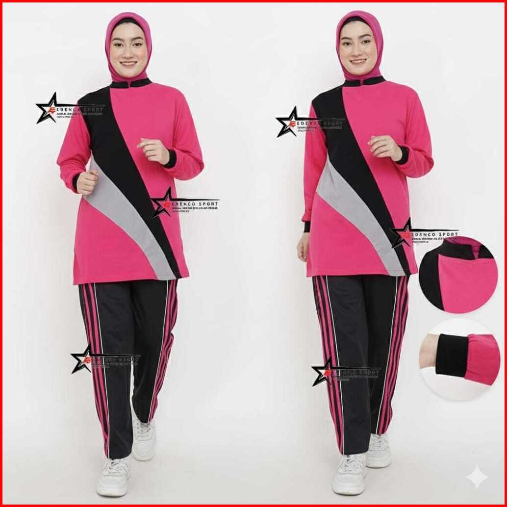 Setelan Baju Olahraga Wanita Muslimah Katun Adem