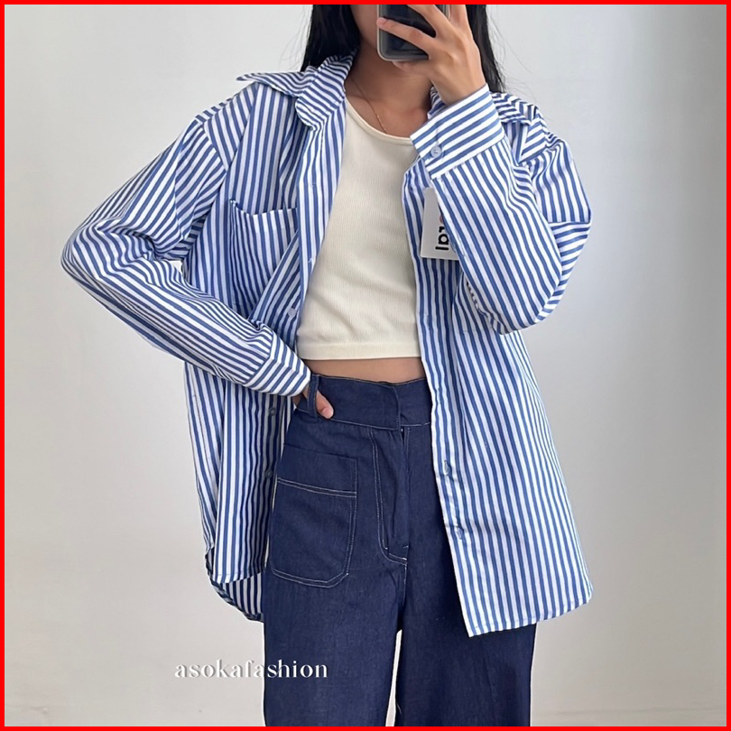 Asoka Amarine Shirt 2164 - Kemeja Salur Kecil - Kemeja Oversize - Pocket Shirt