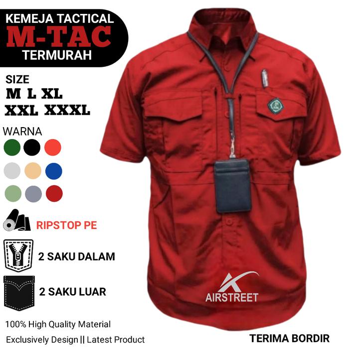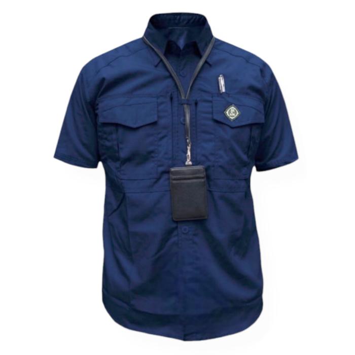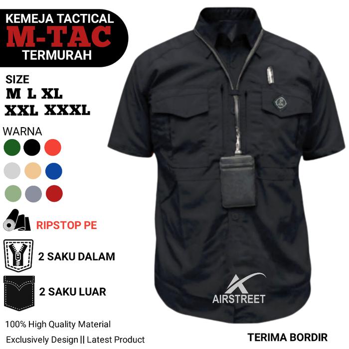 Kemeja Kerja Tactical Pria Wanita Lengan Pendek M-Tac Ripstop Polly Lapangan Pdl Pdh Hem Pns Abu Army Biru Hitam - Hitam