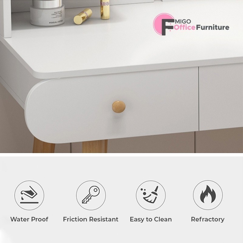 Meja Rias Putih / Meja Rias Minimalis / Meja Rias Kecil/ Meja Make Up lampu Led
