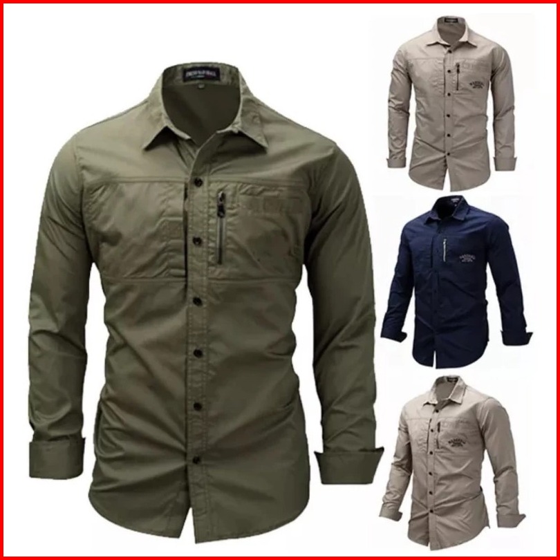 Komara Store - Kemeja Polos Lengan Panjang Pria Kemeja Lapangan Kemeja Kerja Kantoran Dll Baju Twill Atasan Casual Distr