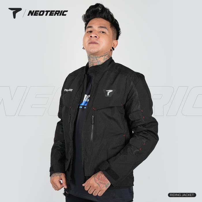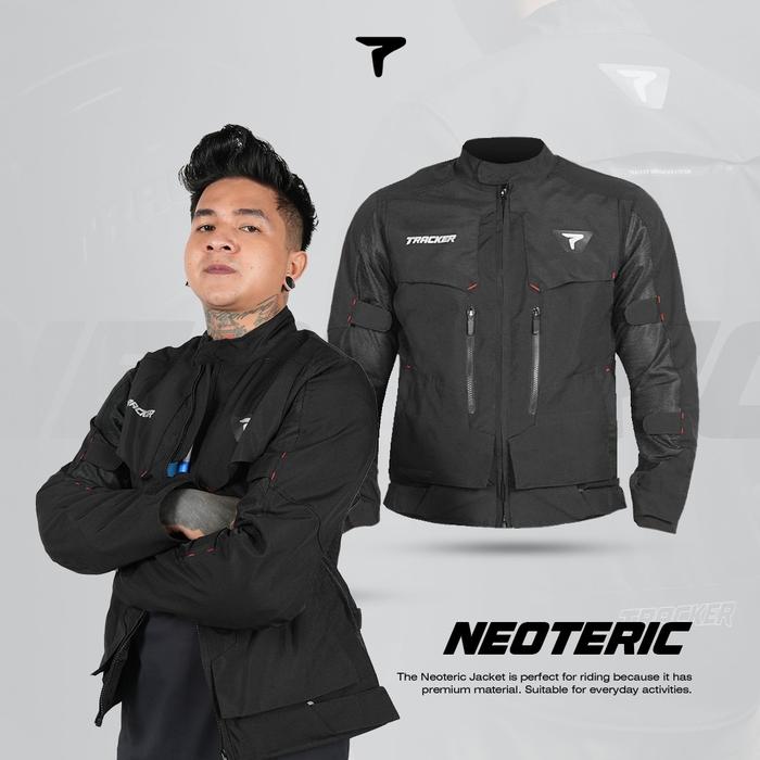 JAKET MOTOR PRIA WATERPROOF WINDPROOF PREMIUM ANTI AIR, ANTI ANGIN, REFLECTIVE, PROTECTOR, NEOTERIC TRACKER - HITAM, L