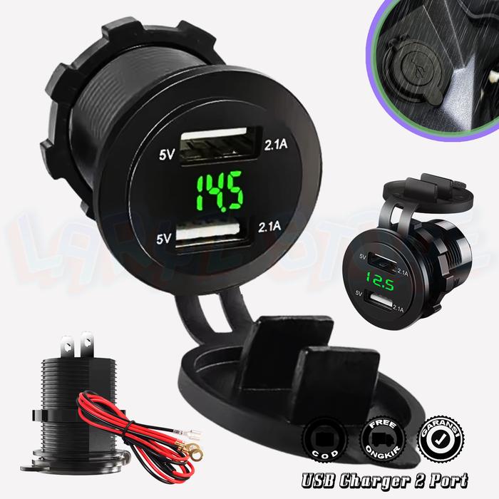 Usb Charger Sepeda Motor Mobil 2 Port Led Digital Display Anti Air Casan Hp Charging Dual Adapter