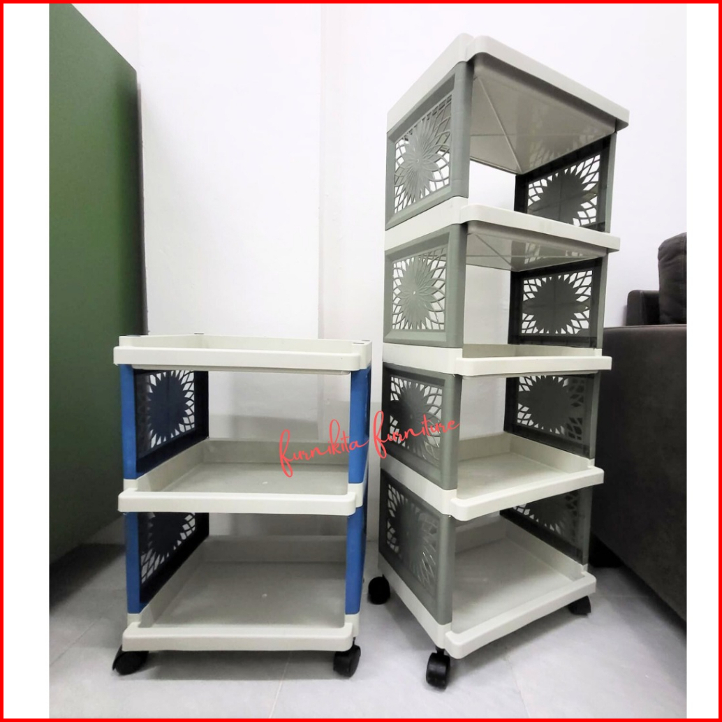 Rak Yoyo Roda Rak Susun Plastik Serbaguna Dorong Usagi