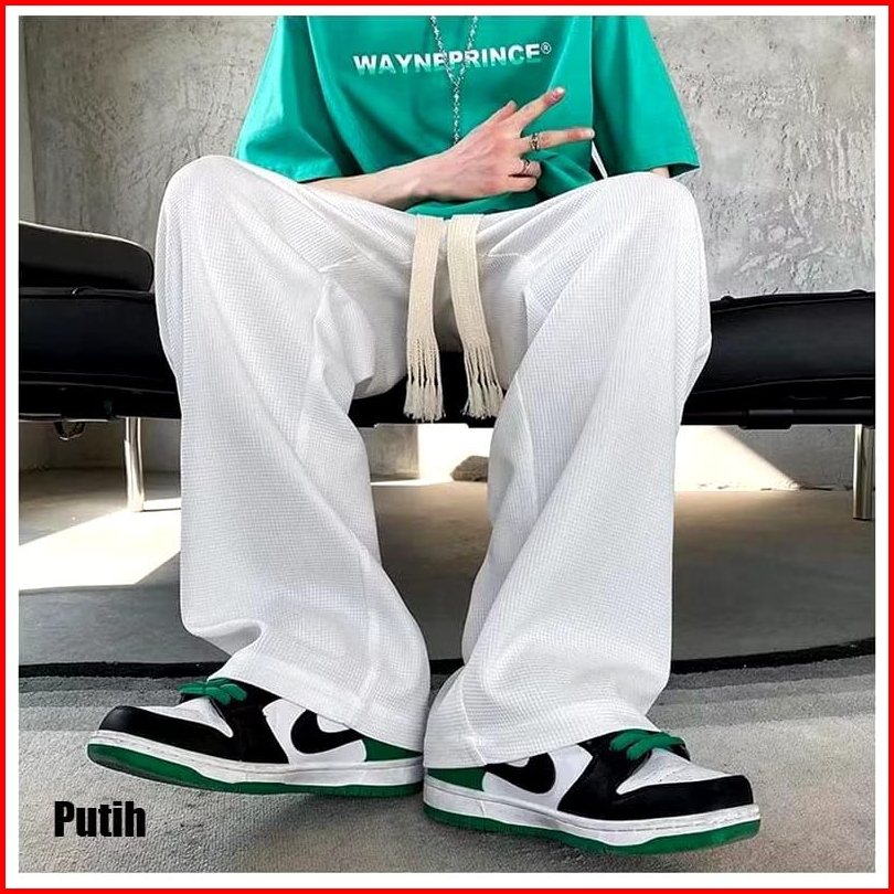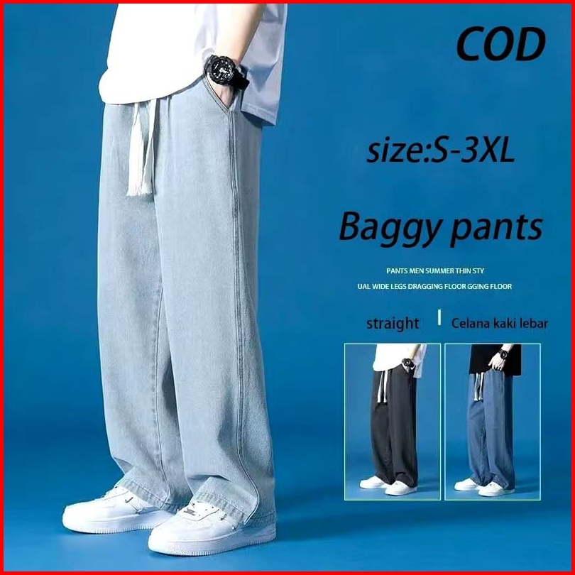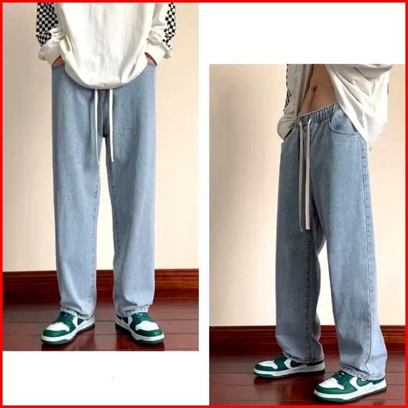 Celana Jeans Pria Celana Panjang Pria Pinggang Karet Korean Style Straight Jeans Santai Longgar Pria Oversize Celana Den