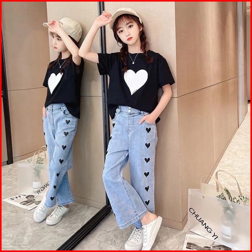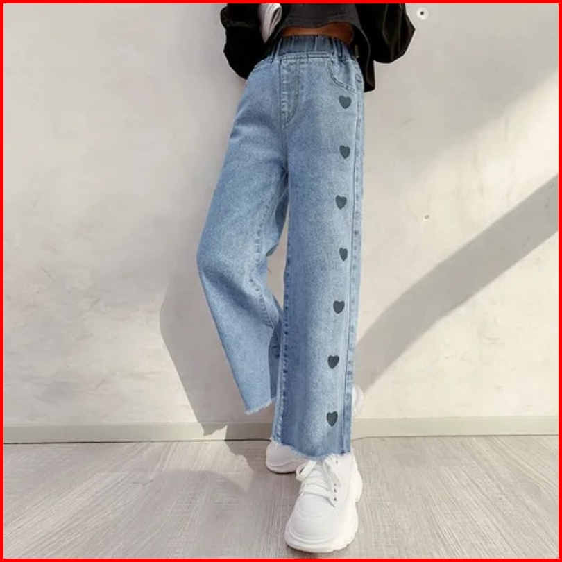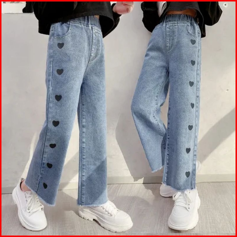 Jeans Anak Kulot Jeans Anak Perempuan Tangung Celana Jeans Anak Kekinian Motif Bordil Love