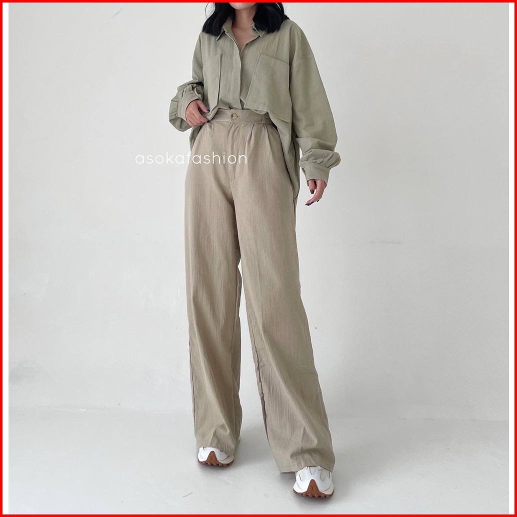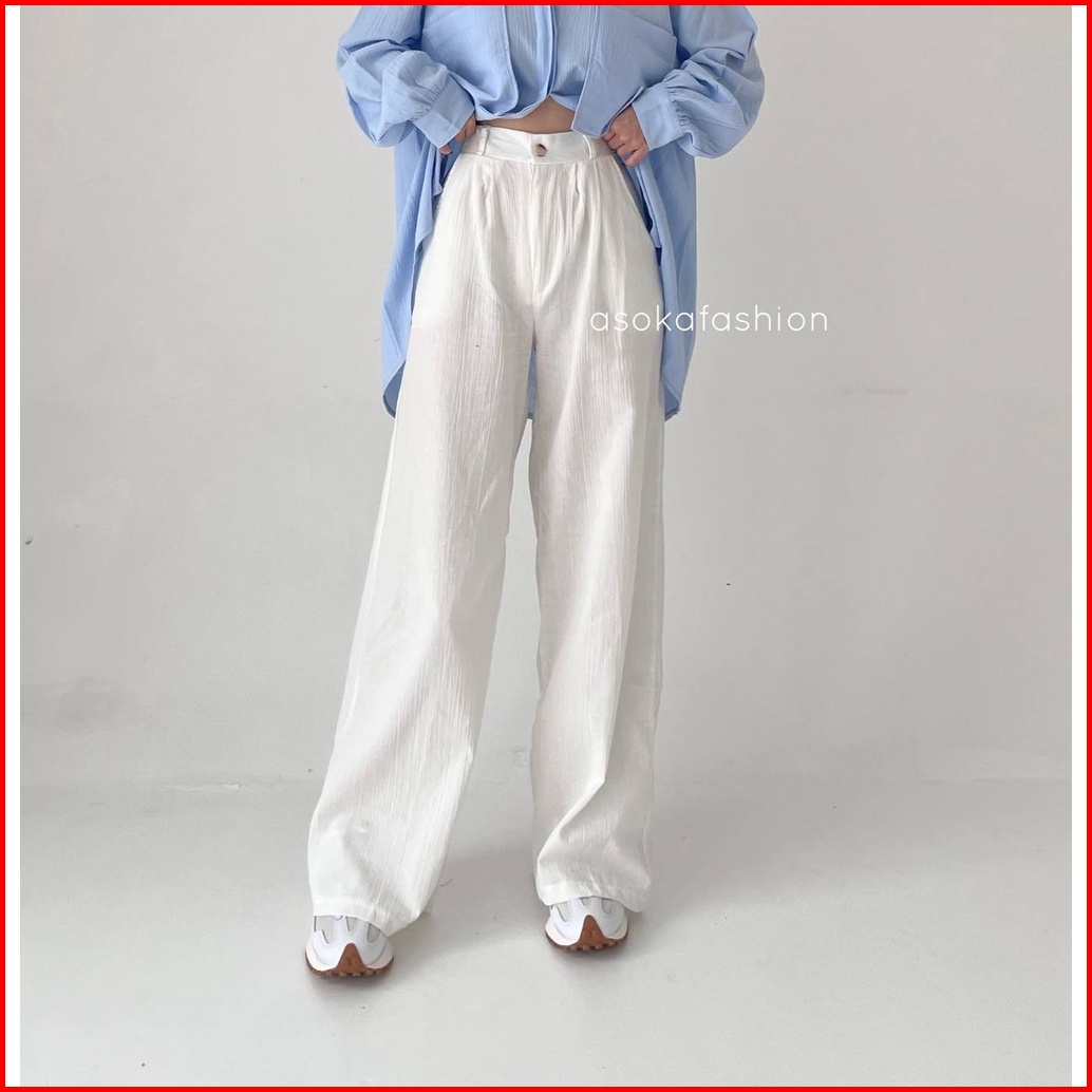 Asoka Beatrix Pants 1103 - Celana Kulot Linen Crinckle Highwaist I Celana Basic Wanita I Cullote Highwaist