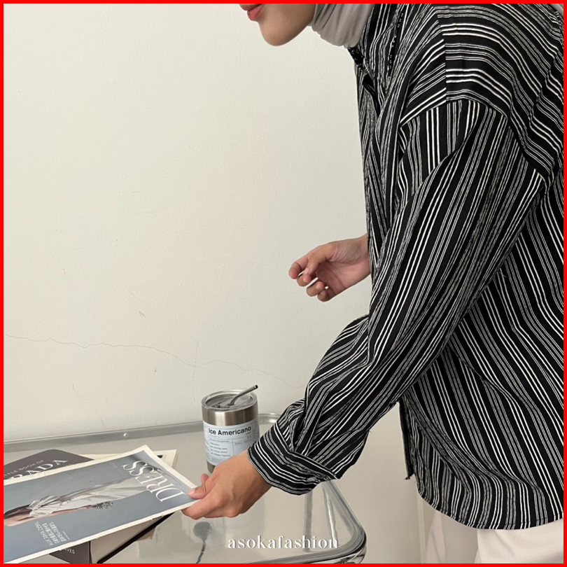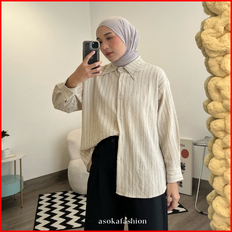 Asoka Diara Shirt 2066 - Kemeja Salur - Kemeja Oversize - Atasan Wanita