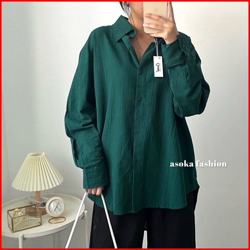 Asoka Suki Shirt 2022 - Kemeja Crinkle Basic Oversize Atasan Wanita - Bumil Friendly