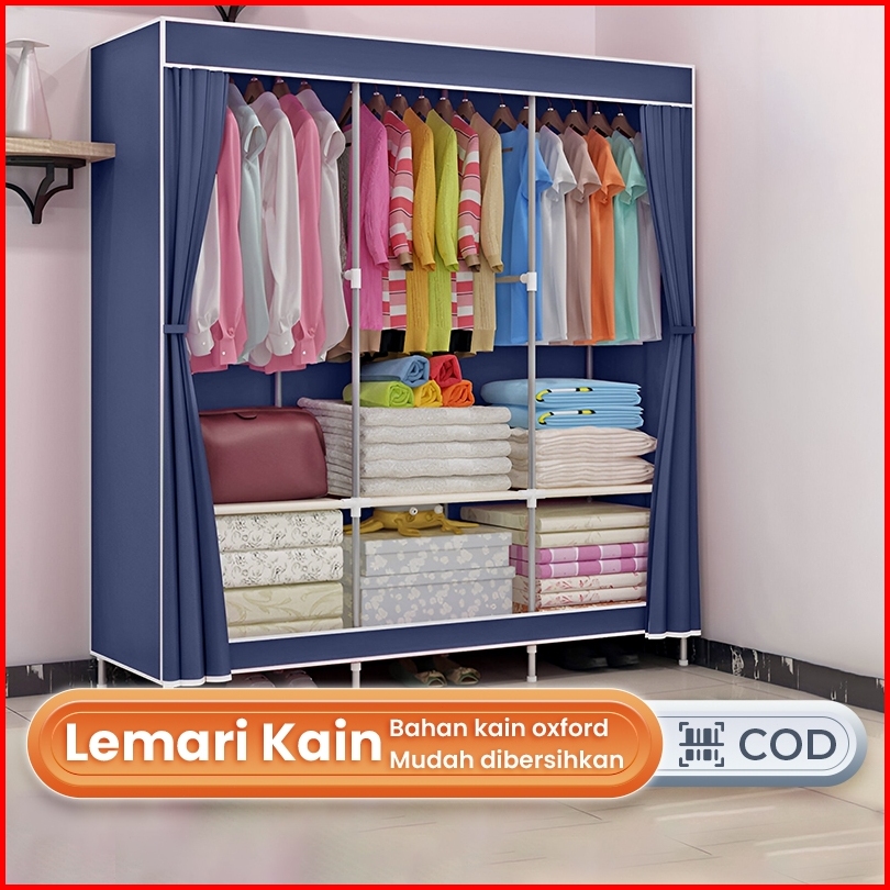Lemari Pakaian Kain Portable Jumbo Lemari 3 Sekat Lemari Baju