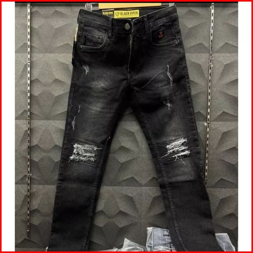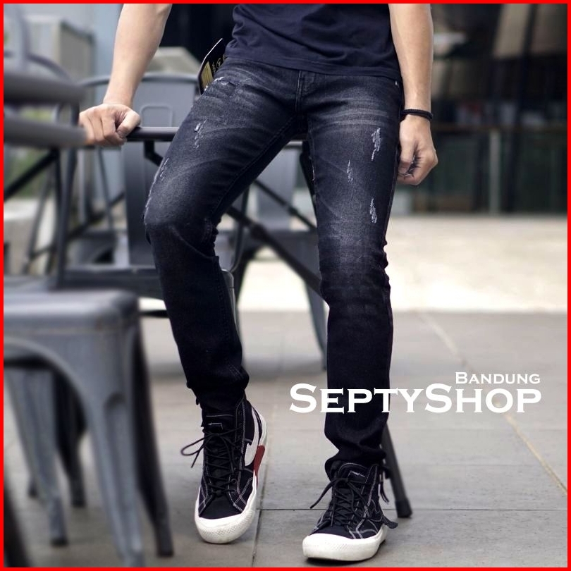 Slimfit Jeans Bikers Pria Ripped-rock Series Black Jazz Editions Celana