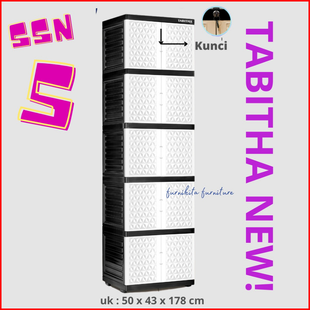 Lemari Pakaian Plastik Mini Tabitha Rotan Susun 5