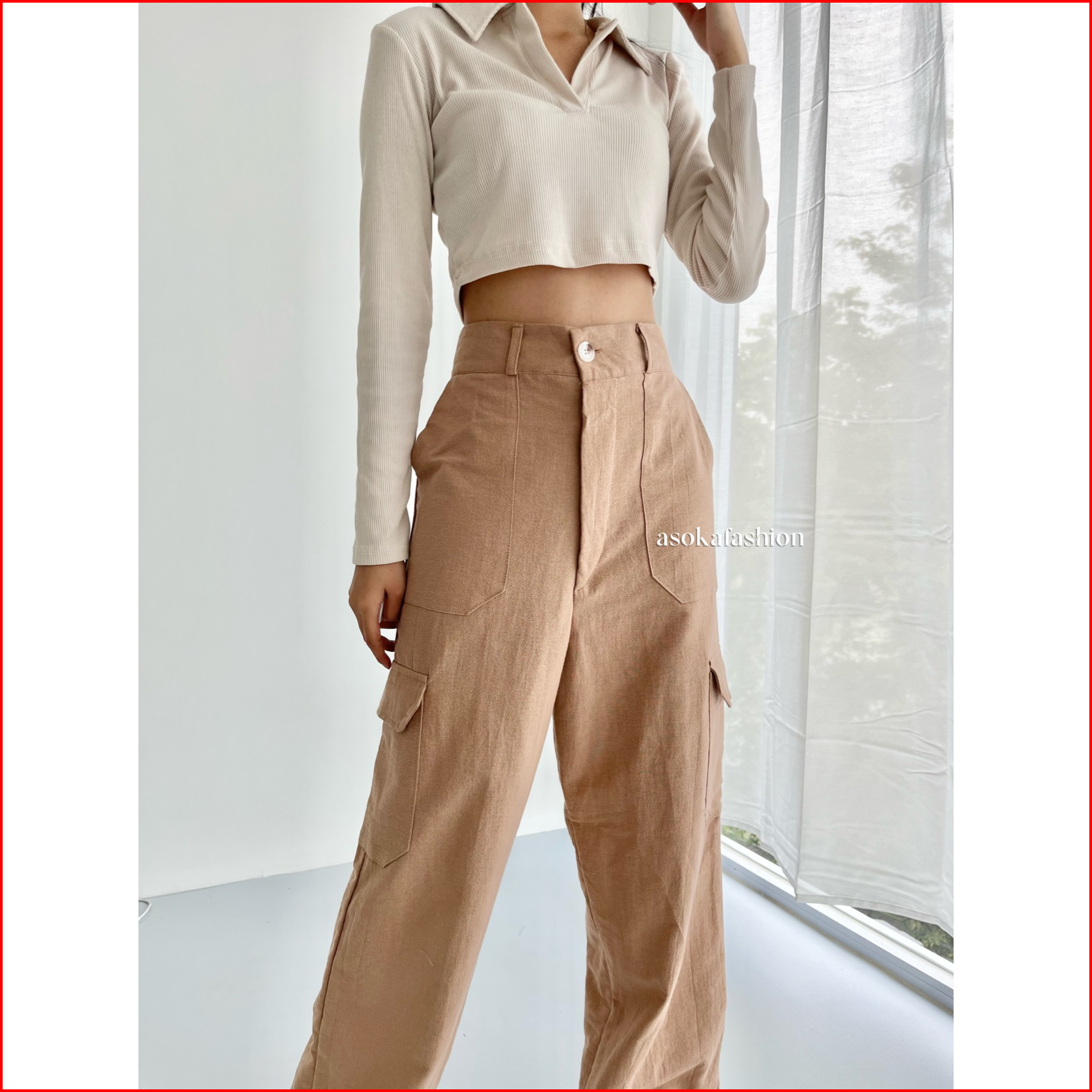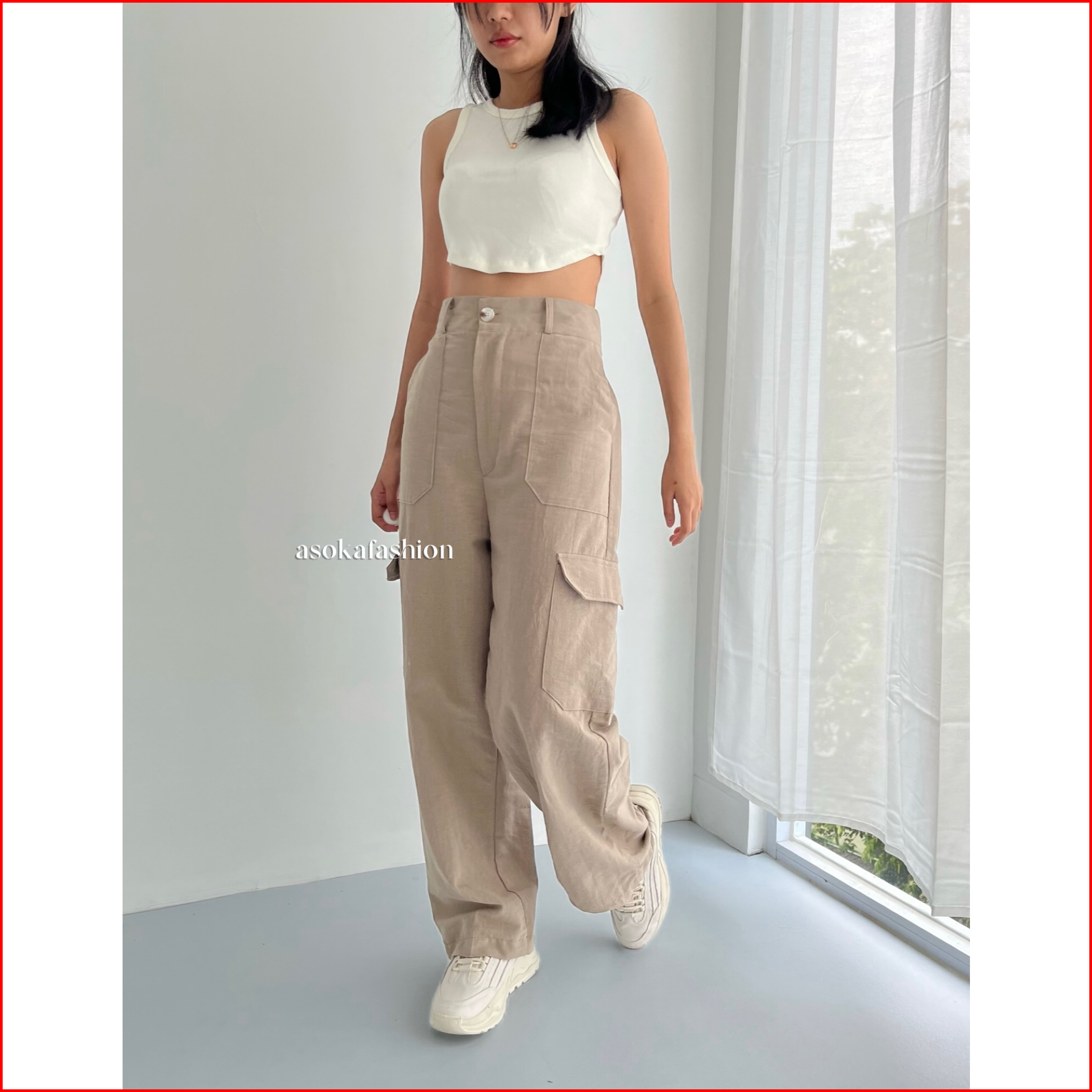 Asoka Jason Cargo 2185 - Highwaist Baggy Pants - Celana Cargo Linen
