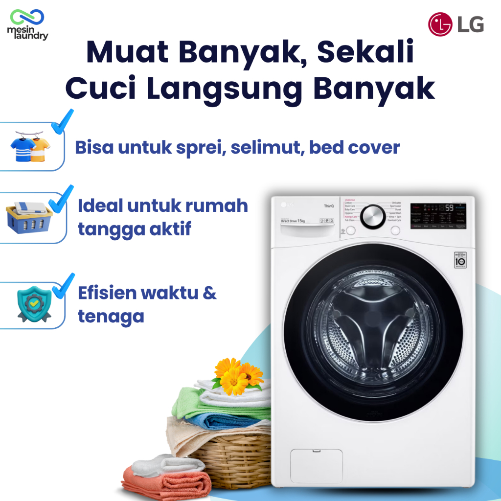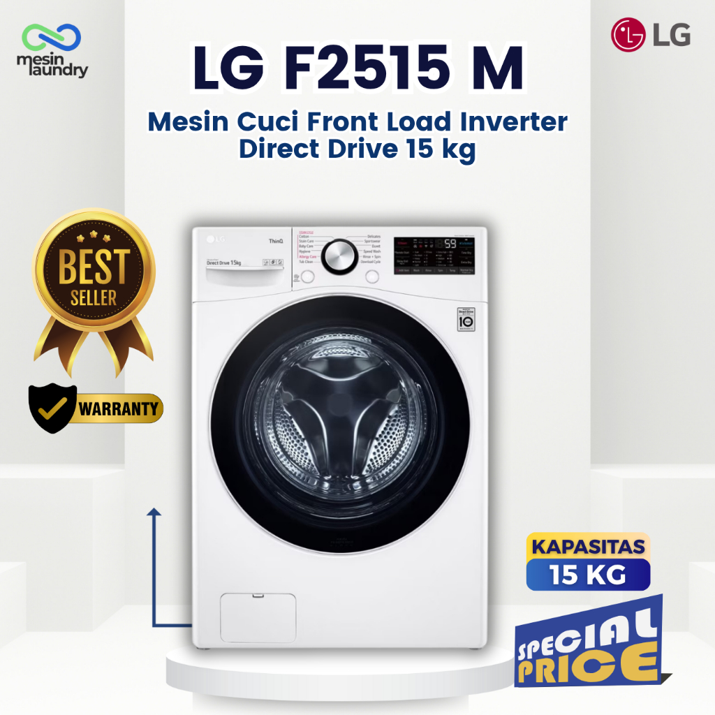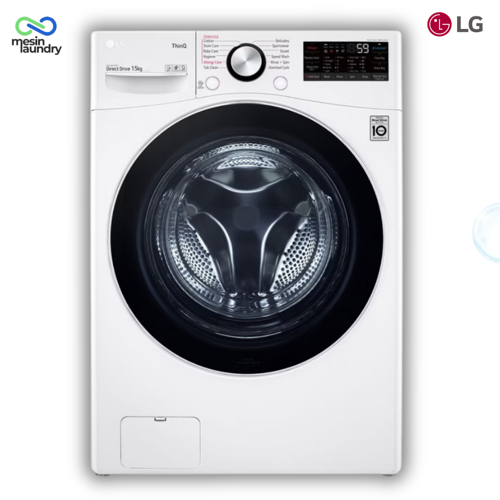 LG F2515SNEW1 Mesin Cuci Front Load 15kg Inverter Direct Drive | TurboWash™ Steam+™ SmartThinQ™