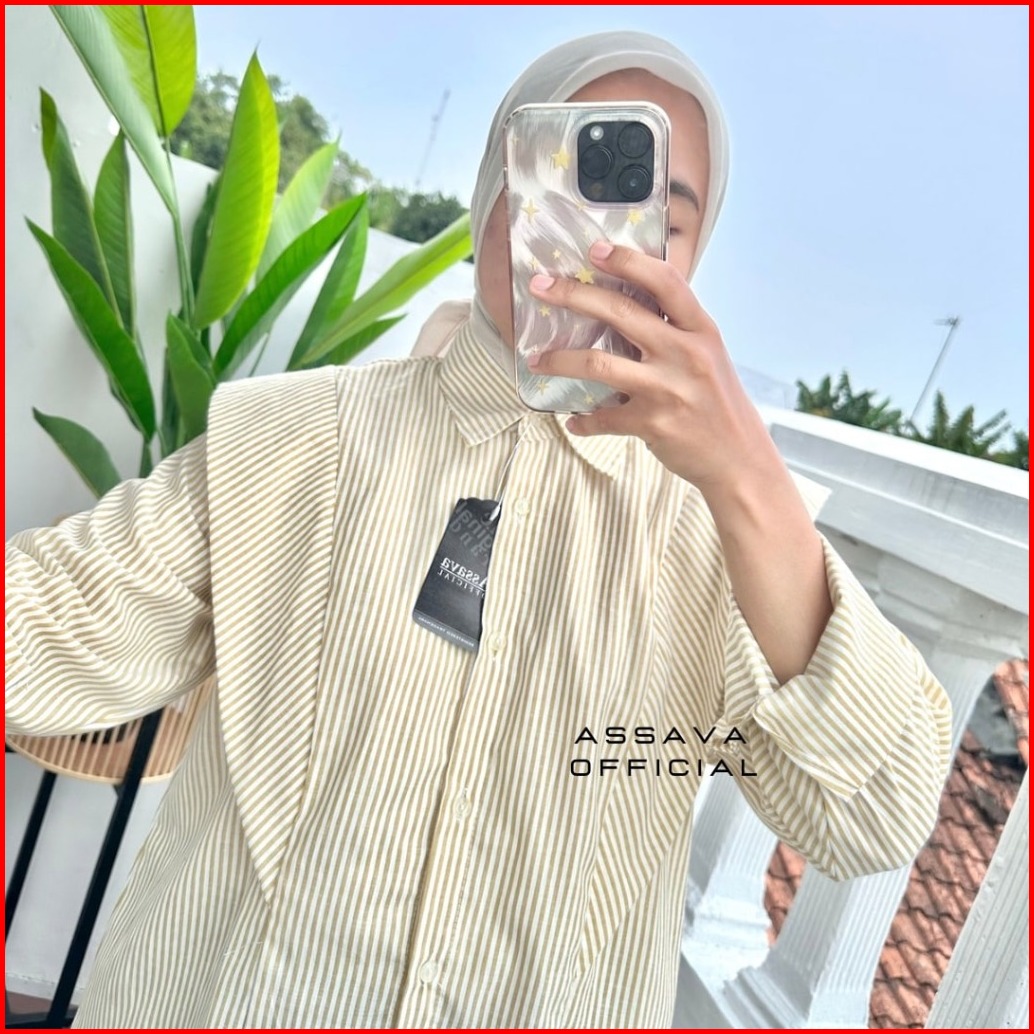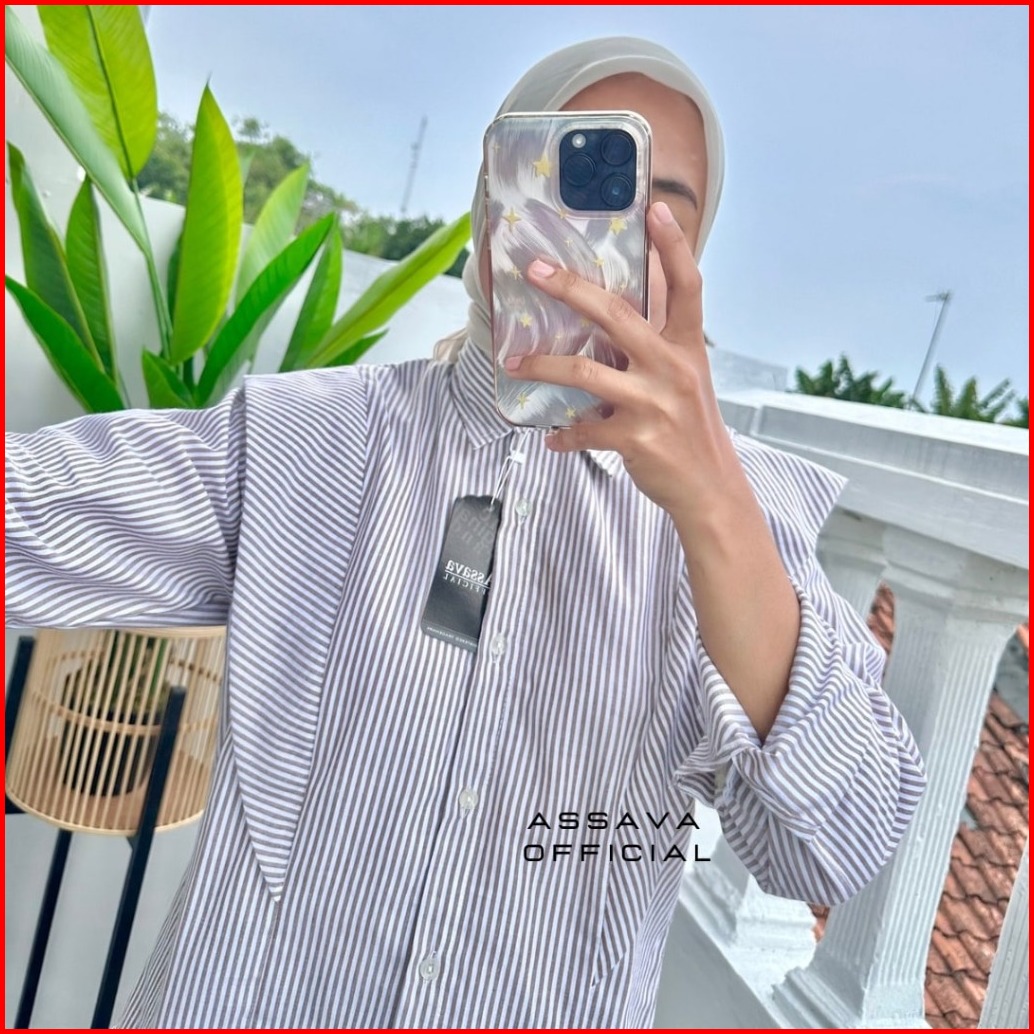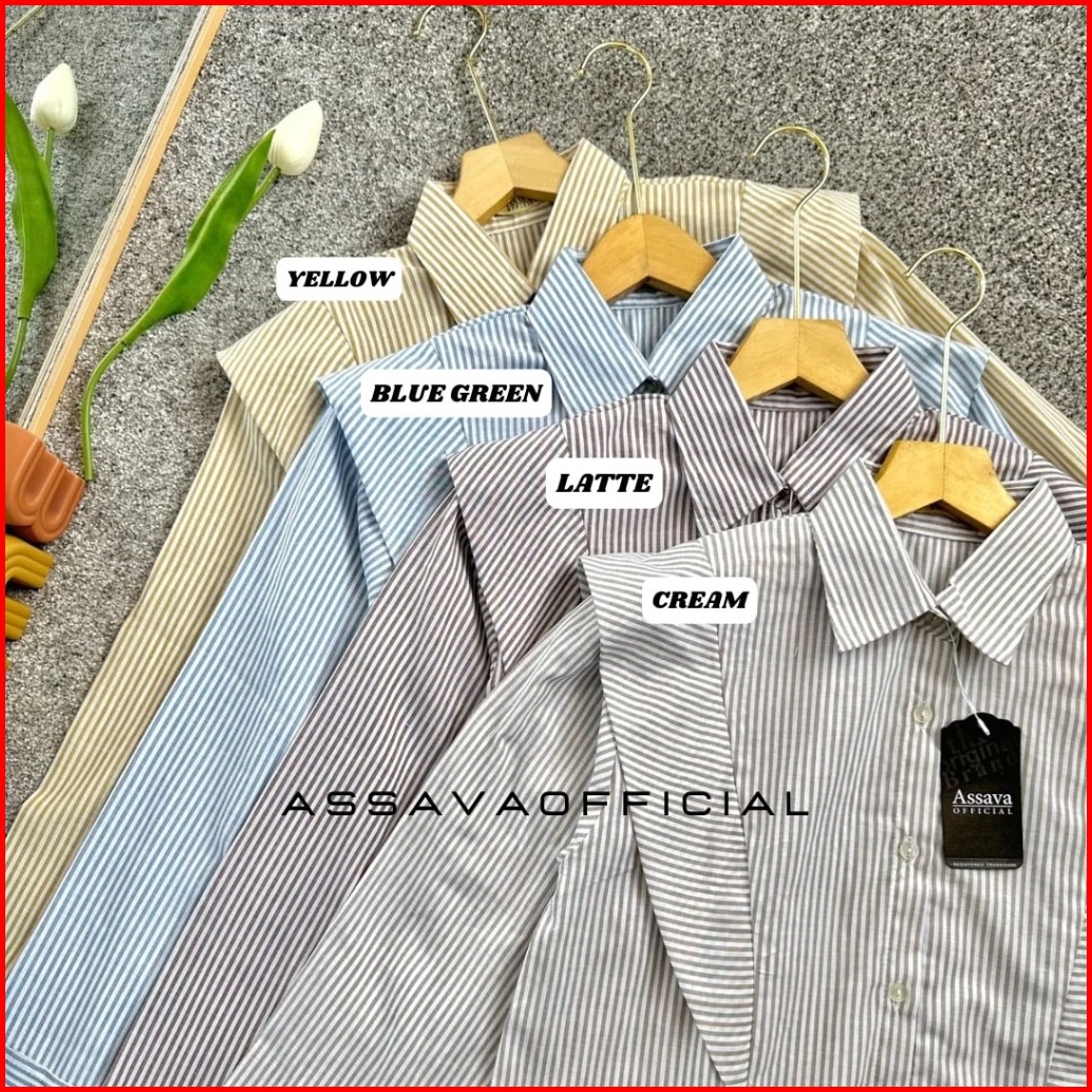 Kara Kemeja Salur Wanita - Salur Striped Shirt - Kemeja Wanita Salur Katun Premium