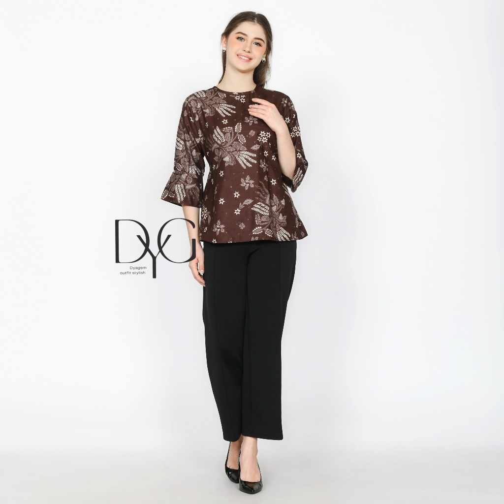 Atasan Batik Kerja Wanita Modern Blouse Batik Lengan Lonceng 3/4 Murah Gratis Ongkir