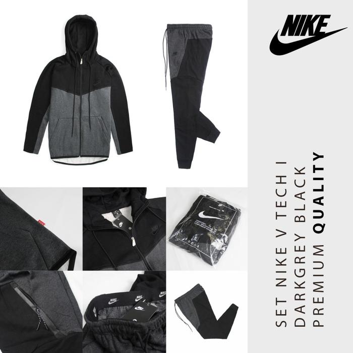 SETELAN CELANA JAKET TRAINING OLAHRAGA PRIA RUNNING JOGGING LARI NIKE - NIKE TECH GREY, M