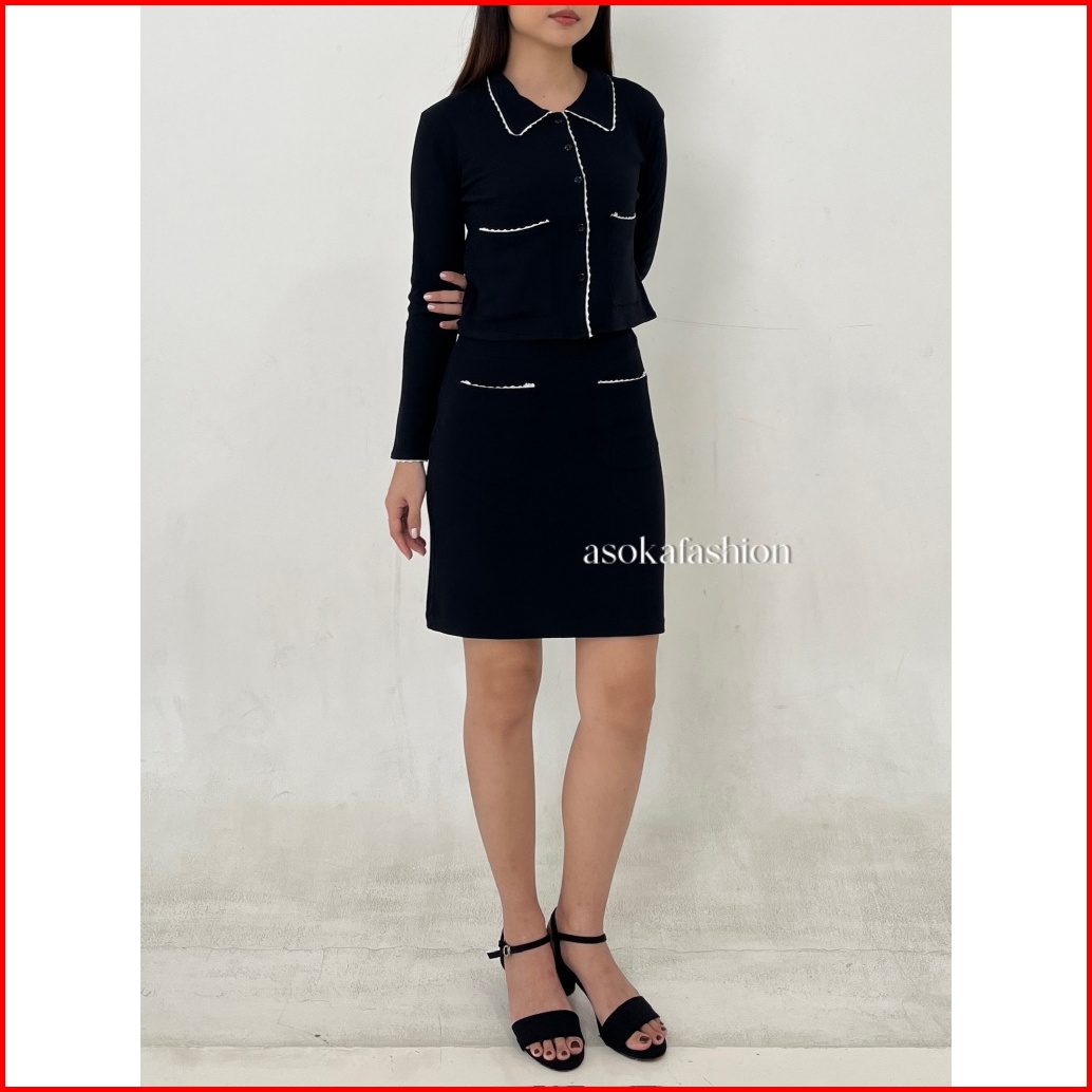 Asoka Vyora Top 3139 - Atasan Wanita Polo Knit - Crop Top Frill Pattern Cardigan Button Long Sleeve