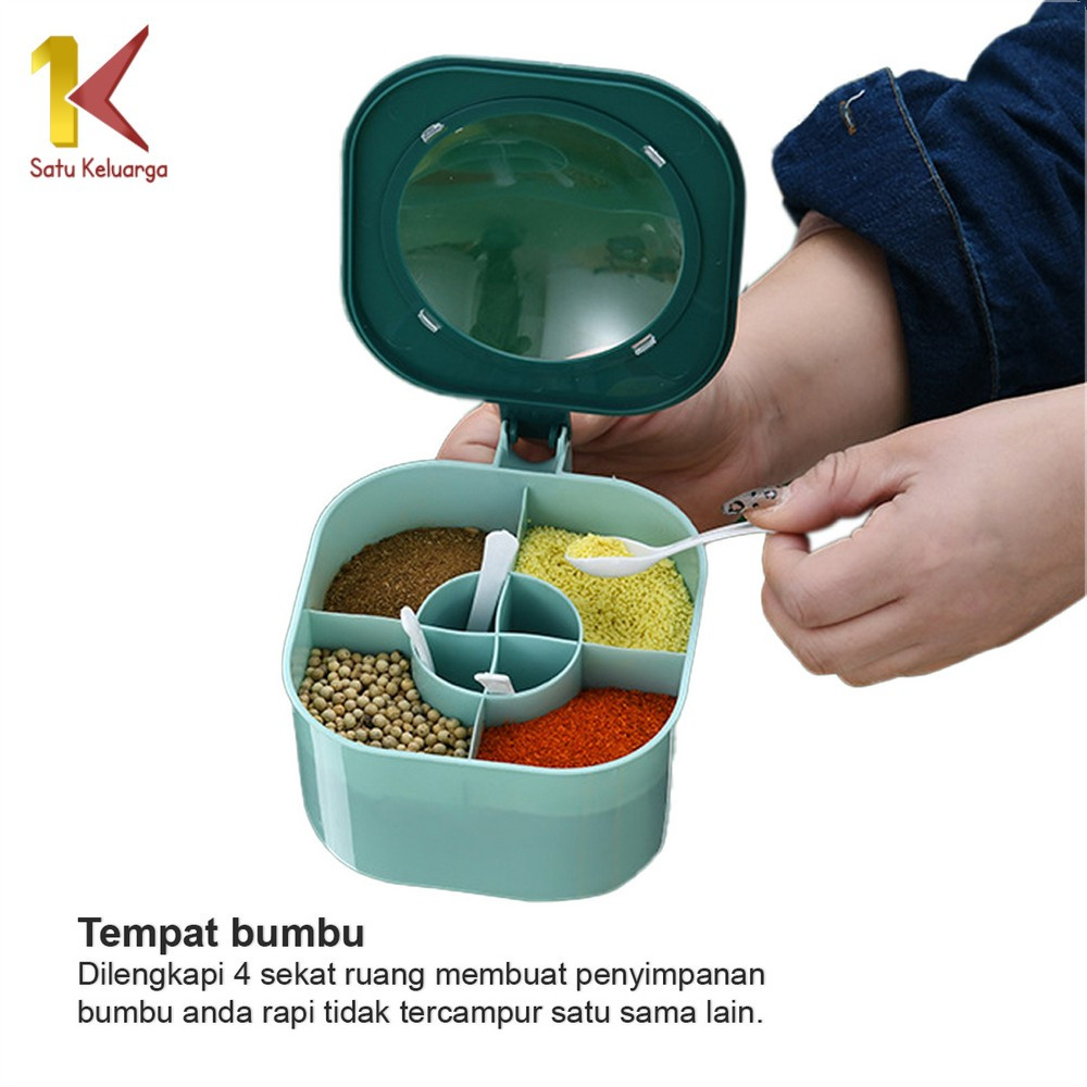 EC Satu Keluarga Tempat Bumbu Dapur 4 Sekat C429 Tempat Bumbu Portable / Wadah Kotak Set / Tempat Gula Garam Serbaguna