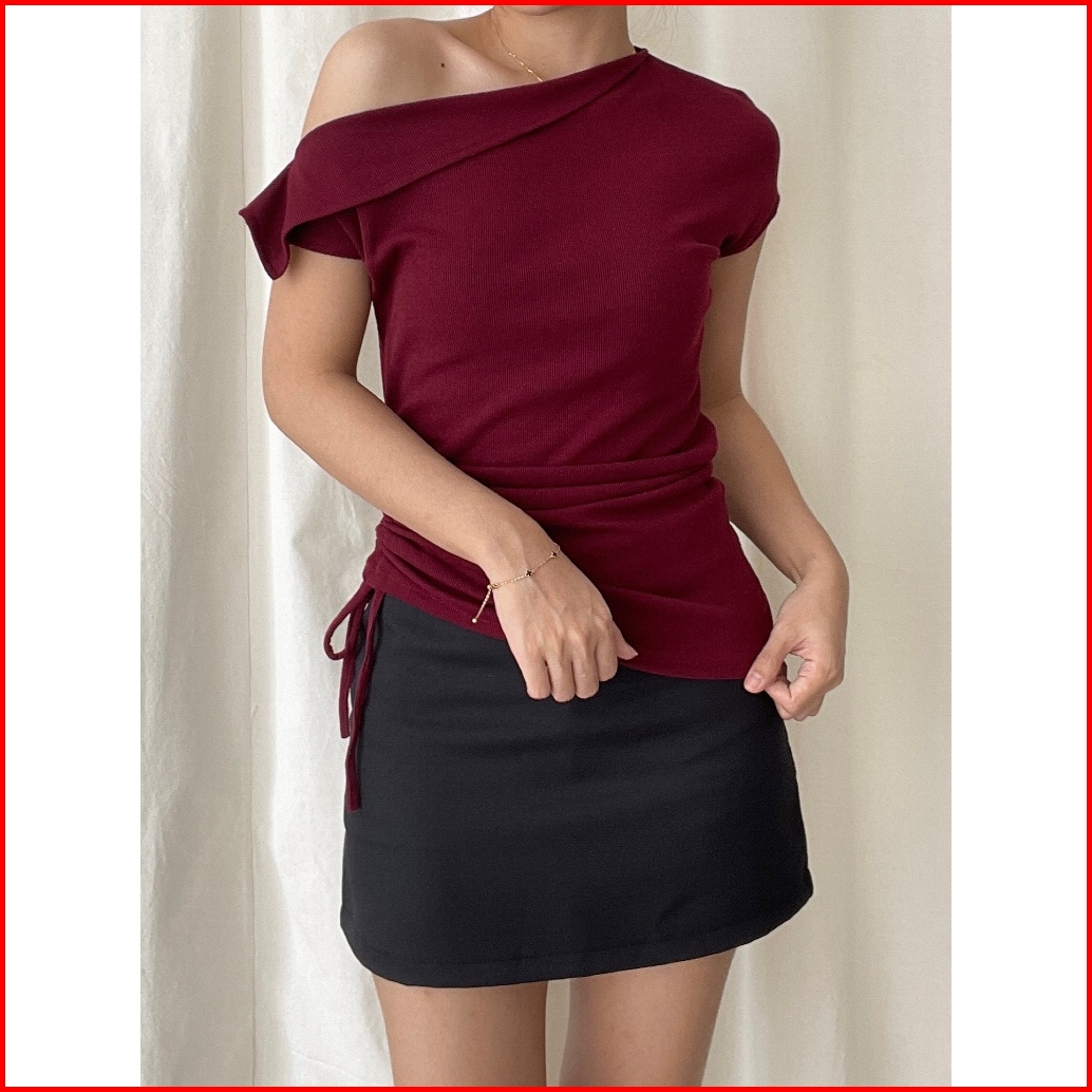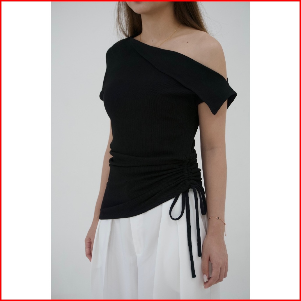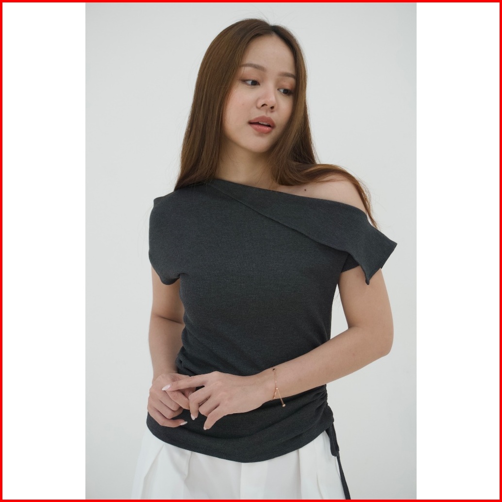 Asoka Narin Top 3153 - Knitwear Korean Scrunched One Shoulder - Atasan Wanita Korean Top