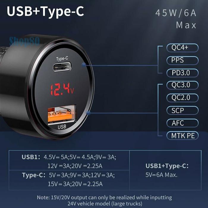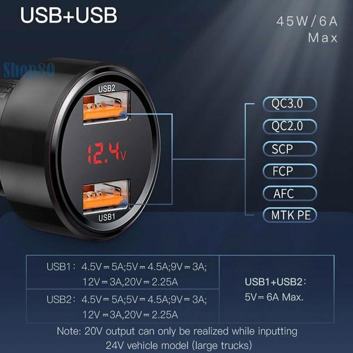 Baseus Adaptor Charger Mobil 6A 45W Usb + Type C Dual Fast Charging Adapter Batok Colokan Casan Cas Car Qc 3.0 - Dual Us