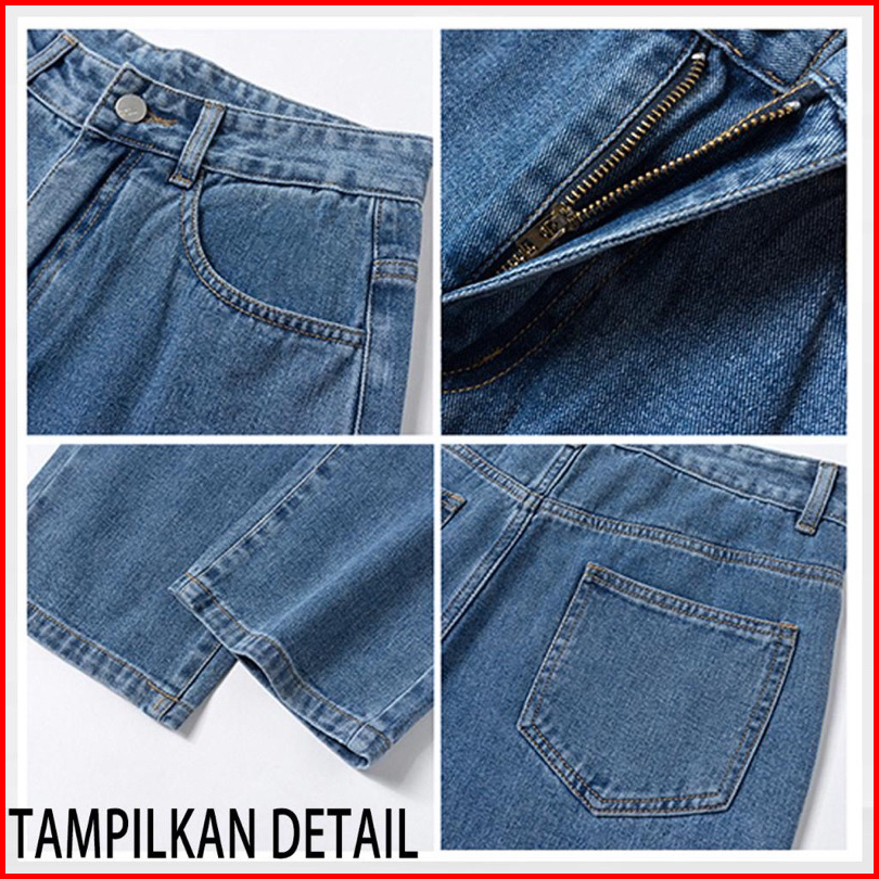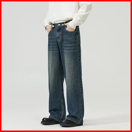 Rominsy - Celana Jeans Pria Standar Panjang Loose Pants Cowok Jumbo Denim Biru Hitam Kekinian