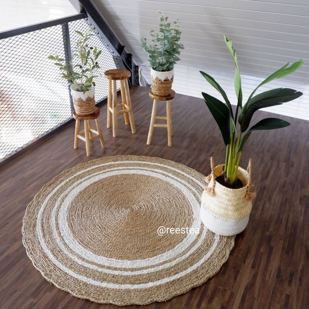 Size 120cm Karpet anyam mendong dengan Serat Natural/ Rug anyam