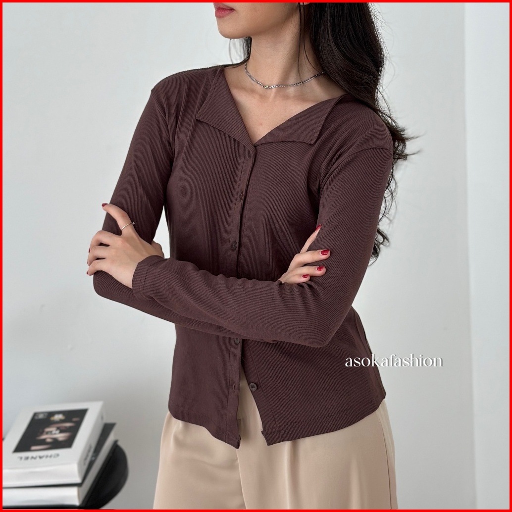 Asoka Levy Top 299 - Knitwear Atasan Cardigan Wanita - Longsleeve Knit Top - Outer Button