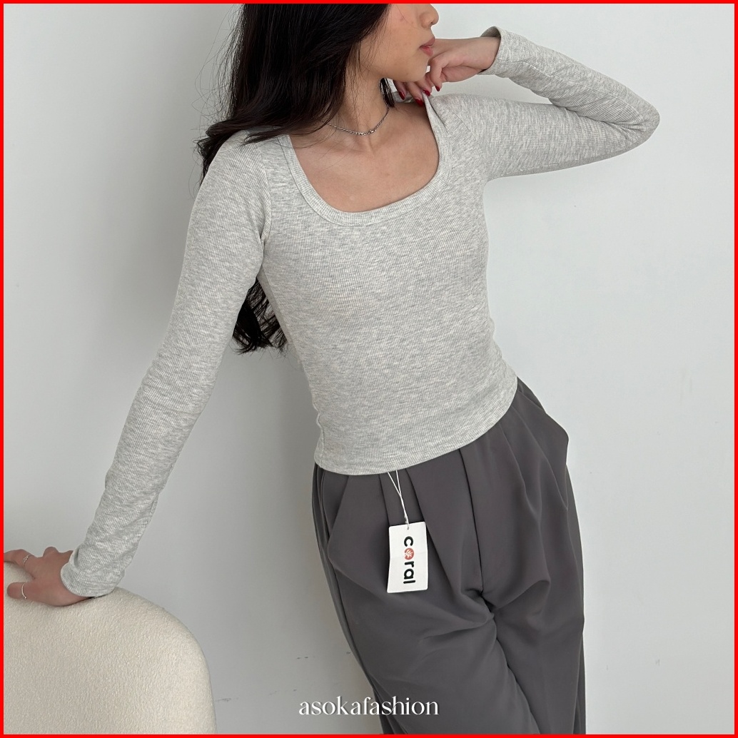 Asoka Glory Top 771 - Knitwear Longsleeve Knit Fit Body - Atasan Wanita U Neck - Crop Stretch T-shirt